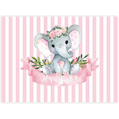 Customer reviews Allenjoy 8x6ft It's a Girl Elephant Backdrop for Baby Shower Princess Newborn Birthday Decoration Pink White Stripes Watercolor Flower Photography Background Photo Booth Studio Props Favors Supplies